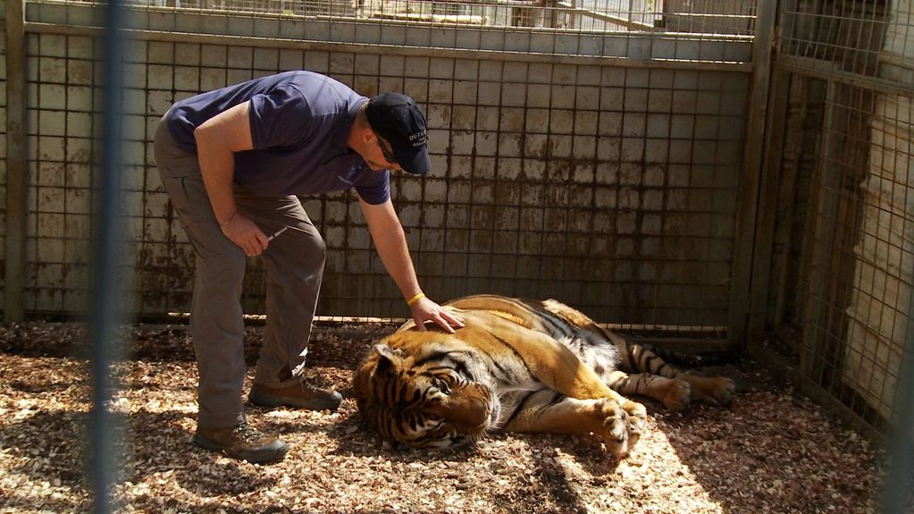 Sammie, A large Bengal Tiger, anesthetized for emergency dental surgery.